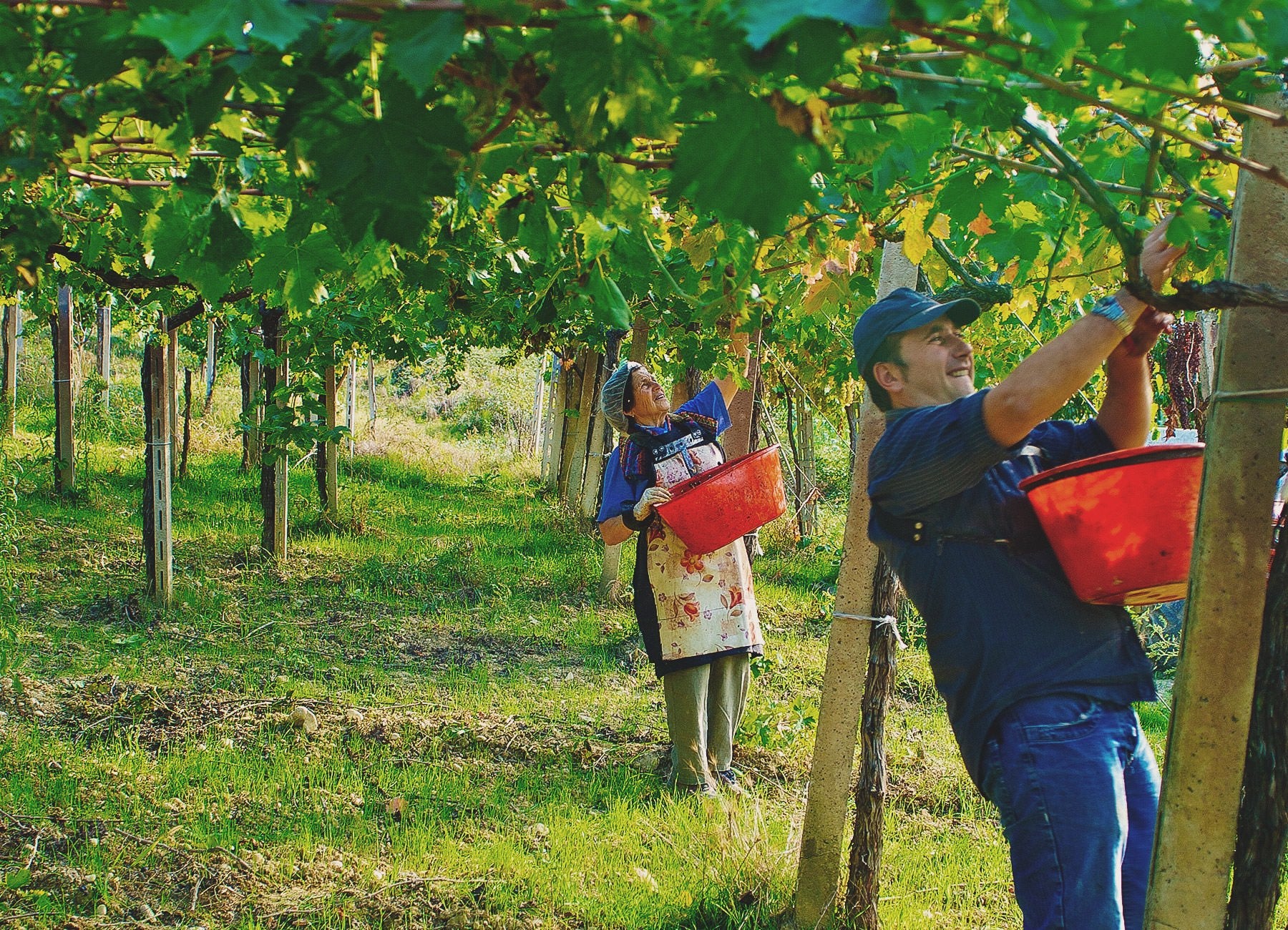 - Grapes are hand-harvested during the early hours of the day with a double-selection